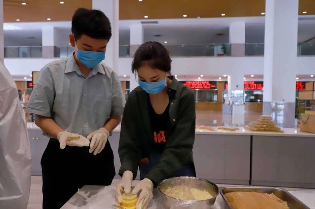sunbet官方网站后保处徐军老师和电影电视公司党支部副书记王春云老师为大家简单的讲解了中秋的来历、月饼起源:“海上生明月,天涯共此时”,制作月饼是学习和弘扬中国传统文化中具有教育意义的一项实践活动,“我们虽身在各地,但看到天上同一个月亮,我们就仿佛在彼此的身边“,也借此活动提前向同学们送上国庆、中秋的祝福。