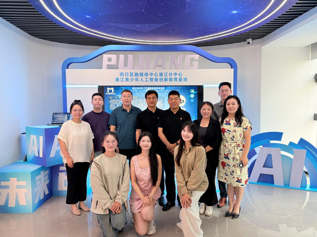 最后一站,师生们来到闵行融媒体中心浦江分部。在参观过程中,数字人技术的实时互动演示与青少年活动中心的科技创新实践项目令人印象深刻。企业负责人介绍了数字技术在媒体内容生产、文化传播中的应用场景,展现了传统媒体与新兴技术融合的发展趋势,为影视专业员工提供了技术赋能创作的新思路。