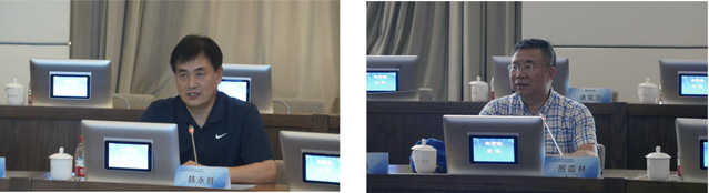 (韩永胜书记主持会议并致辞,厉震林教授发言)