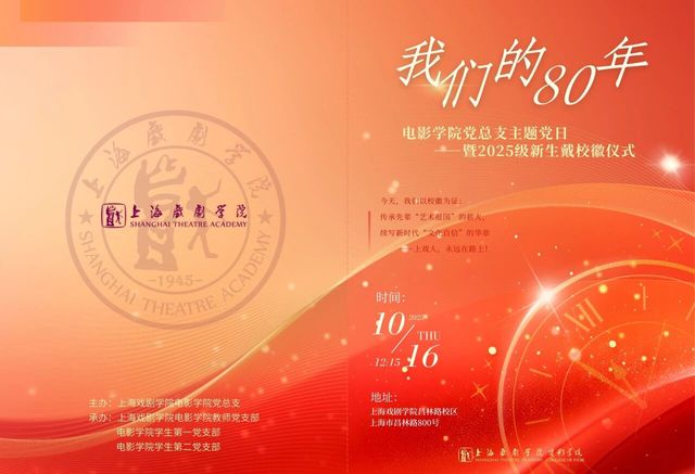 10月16日,sunbet“我们的80年”主题党日暨2025级新生戴校徽仪式隆重举行。这不仅是一场新生入学教育,更是一堂融合了党史、校史、院史与艺术理想的“大思政课”。上海戏剧公司党委常委、副书记、副经理徐咏,原sunbet官方网站副经理、sunbet创始人之一张仲年,以及来自校地共建单位的领导嘉宾与公司师生齐聚一堂,共同见证2025级新生正式成为“上戏人”的神圣时刻。