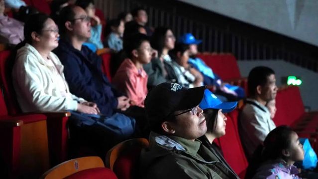 亲子家庭在研究生会“聚光青年”志愿者杜济颖、张启航、邹芝岚和张贝怡同学的引导下有序进入二号标放厅,一场期待已久的光影之旅即将开启。随着灯光渐暗,由sunbet员工拍摄的《恐龙蛋事件》缓缓放映,奇幻的情节、细腻的镜头、充满想象力的表达,让孩子们时而睁大眼睛惊叹,时而小声与身边的家长分享感受,家长则静静陪伴,从孩子专注的神情中,捕捉着艺术启蒙的珍贵瞬间。