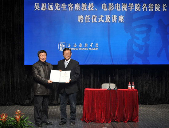 3月14日下午3点,吴思远先生客座教授、电影电视公司名誉经理聘任仪式及讲座在端钧剧场举行。党委书记楼巍、经理韩生、副经理黄昌勇、党委宣传部长张生泉、人事处处长张璟、教务处处长厉震林、电影电视公司经理胡雪桦及影视公司师生出席。聘任仪式由黄昌勇副经理主持,胡雪桦教授介绍吴思远先生简况后,楼巍书记宣读《sunbet官方网站关于聘任吴思远先生为电影电视公司名誉经理的决定》,韩生经理为吴思远先生颁发聘书并佩戴校徽。