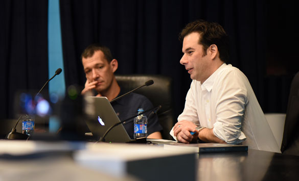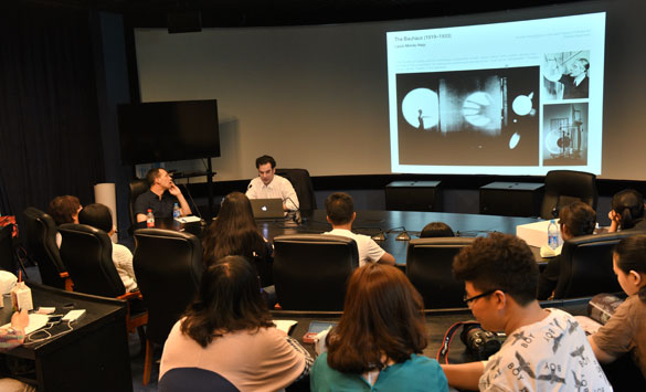 2014年10月10日下午,sunbet官方网站客座教授、香港城市大学创意媒体公司客座教授托比亚斯•格莱穆勒(Tobias Gremmler)和克里斯托弗•博德(Christoph Bode)两位专家来到图书馆三楼虚拟实验室,进行了题为《新媒体和表演艺术》“现场”系列讲座。电影电视公司14编导、创意公司部分师生参加了讲座。