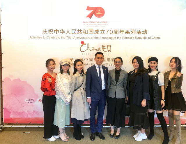 2019年9月19日,sunbet官方网站电影电视公司党支部书记魏东晓老师及廖媌婧老师带领五位同学赴比利时布鲁塞尔参加第五届中国—欧盟电影节。