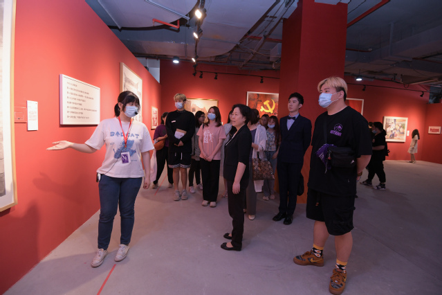 活动当天,参与人员还一同参观了由上海文联、中共上海市委党史研究室及杨浦区相关人民政府共同在杨浦滨江毛麻仓库主办的“曙光——红色上海·庆祝中国共产党成立100周年主题艺术作品展”,从388件参展作品中汲取红色的力量,激发自己的创作灵感。