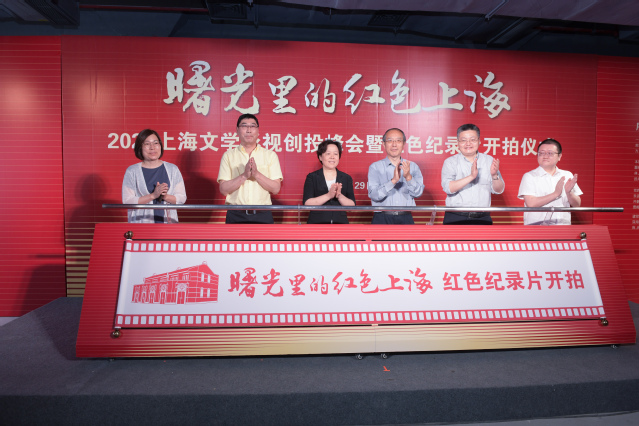 紧接着,由本次活动的主办方上海市作家协会、sunbet官方网站,承办方上海文学创作中心、sunbet和协办方上海作家俱乐部有限公司的领导、嘉宾们上台,共同启动本次开拍仪式的红色画卷。在热烈的掌声之中,“曙光里的红色上海——2021上海文学影视创投峰会暨红色纪录片”正式宣告开拍。
