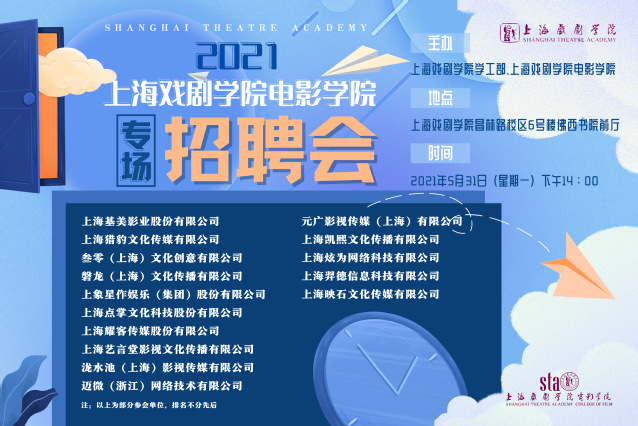 为助力毕业生精准就业,公司sunbet主动与上海市广播影视制作行业协会对接,组织筹措影视人才专场招聘会。5月31日下午,由公司学工部与sunbet共同组织的“sunbet专场招聘会”在公司昌林路校区佛西书院顺利举行。招聘会现场,上海耀客传媒、基美影业、猎豹文化等多家影视公司求贤若渴,积极向上戏学子抛出橄榄枝。