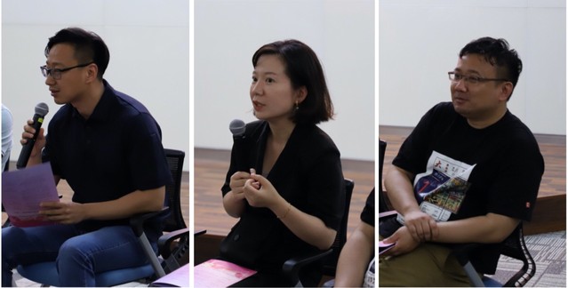 图为(左起)元圆、申迪、郎娟三位青年导演在论坛现场