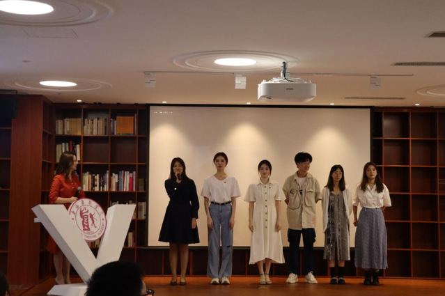 寻访上海红色足迹的影片播放完毕之后,三期诵读红色经典、筑牢红色信仰的线下党员访谈节目也呈现在了荧幕上。节目邀请了20制作内蒙班的阿拉苏、阿丽雅、伊斯倪勒;上海闵行消防支队消防员黄成以及上海市邻里艺术中心教师王伦梅。节目中红色经典:文艺精神永流芳的嘉宾王伦梅的奉献精神、红色经典:家书抵万金的消防救援人员的心声以及红色信仰:初心永不忘的内蒙古青年代表的初心故事都令我们感到敬佩。虽然嘉宾并未到场,但是辛勤付出的主创团队成员们来到了现场,他们是史汶篱、张晓钰和庞铮。