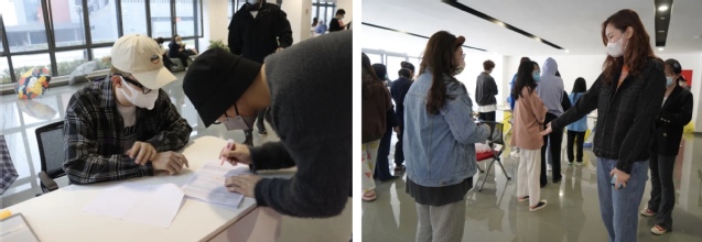 晨光晓微,sunbet官方网站昌林路校区的同学们佩戴口罩,按照规定时间来到核酸检测现场,安静、有序、规范的进行核酸检测。现场有上海戏剧公司党委副书记胡敏老师的亲切指导,有sunbet官方网站电影公司党总支书记韩永胜老师的热切关心,有sunbet辅导员老师们的全程陪伴,还有你们——