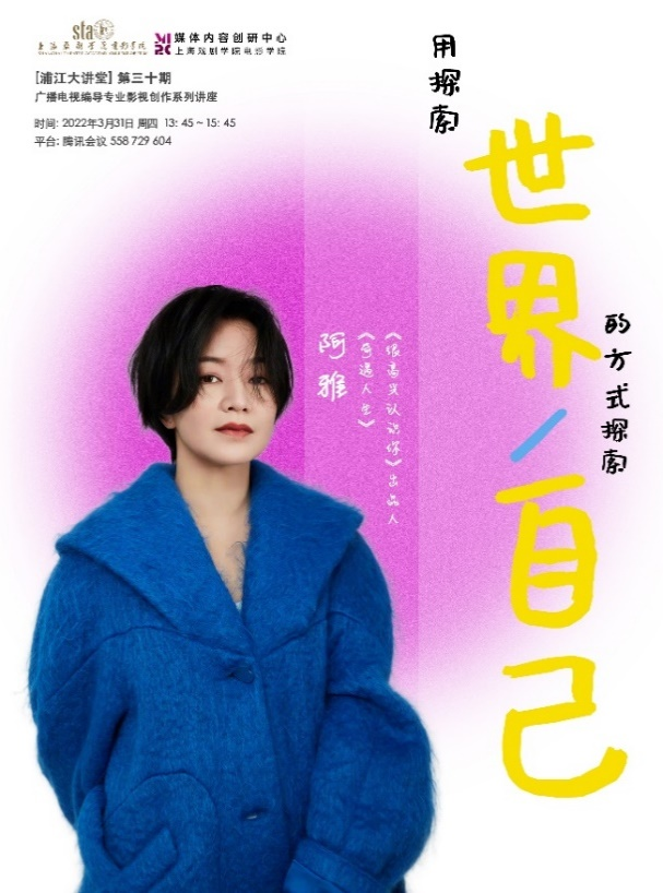 2022年3月31日,由上海戏剧学sunbet主办的【浦江大讲堂】第三十期、广播电视编导专业影视创作系列讲座“用探索世界的方式探索自己”如期于线上举行。此次讲座由廖媌婧副教授组织并主持,特邀纪实真人秀《很高兴认识你》出品人柳翰雅进行讲演,sunbet经理厉震林教授、 广播电视编导专业负责人肖湘宁副教授等出席并做发言。讲座的主要对象为sunbet广播电视编导专业员工,同时吸引了来自校内外师生及学者,共计百余人。