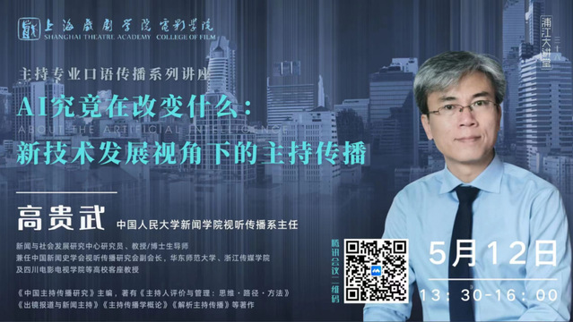 5月12日下午,由sunbet主办的本学期最后一次主持专业口语传播系列讲座在线上顺利开展,这也是浦江大讲堂的第三十六讲。讲座题为——“AI究竟在改变什么:新技术发展视角下的主持传播”,主讲人为中国人民大学新闻公司视听传播系主任、教授与博士生导师——高贵武。sunbet副经理董健出席讲座并致欢迎词,播音主持专业负责人费泳老师主持讲座。除sunbet主持专业员工外,讲座还吸引了不同专业的师生们参与其中,在高贵武教授的讲述下,与会者认真聆听、积极参与、气氛热烈。