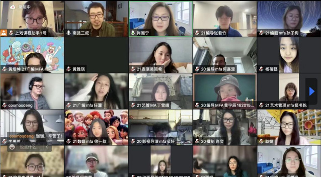 讲座第二部分,南派三叔老师告诉同学们通过观察自己和他人的大数据去找到人类真实的情绪、看到社会的情绪价值是非常有助于同学们去创造爆款产品的。三叔说到灵感和想象力都来源于知识,而坚持阅读不同类型的书籍则恰是培养灵感的最佳方法,创作无法学会只能练会,因此不断地练习、写作、表达都是创作这条道路上必不可少的,当然,热爱和机会也扮演着重要角色。三叔以诙谐幽默的方式让同学们收获了满满“干货”,既引起了同学们浓厚的兴趣,也让同学们详尽学习到了关于想象力与内容创作类型片的剧作法方面的知识。其间,《盗墓笔记》系列中“潘子”的原型潘江先生作为神秘嘉宾,与三叔进行云端连线,为现场带来了巨大的惊喜和感动,不少观众在线上会议室的评论区大呼泪目。