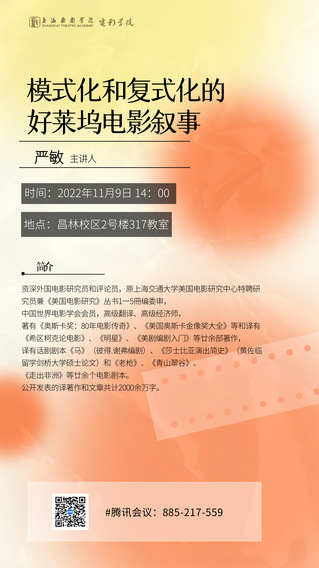 2022年11月4日,由sunbet万传法教授组织并主持、资深外国电影研究员和评论员、原上海交通大学美国电影研究中心特聘研究员严敏先生主讲的讲座顺利举办。本次讲座的题目为:《模式化和复式化的好莱坞电影叙事》,讲座的主要对象为sunbet官方网站“影视剧作分析”课程的员工,但也吸引了来自校外的众多员工与学者,反响十分热烈。