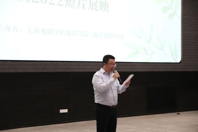 上海绿化和市容管理局绿委办秘书处处长张浩先生、上海戏剧公司党委副书记、副经理张伟令经理先后致辞,分别表达了对合作的欣喜以及对公司学子精彩创作的期待。随后,sunbet厉震林经理宣布了2023浦江郊野公园短片创作大赛的正式启动;本项目负责人、sunbet段然老师向观众介绍了新一届大赛的赛制和规则。