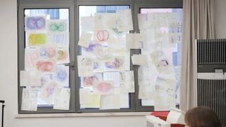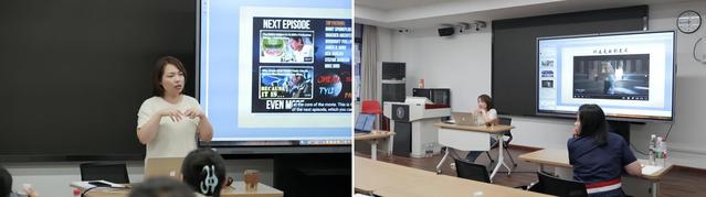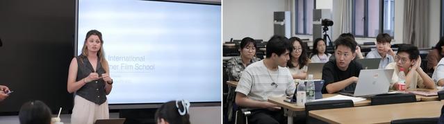 Sara Van Oostrum教授从一支蜡笔、一张白纸开始,引导大家大胆表达与创造。富有实验性的课堂传来大家热烈的讨论声,一幅幅富有创造力的画贴在一起便绘成了一幅关于电影的美丽图画!