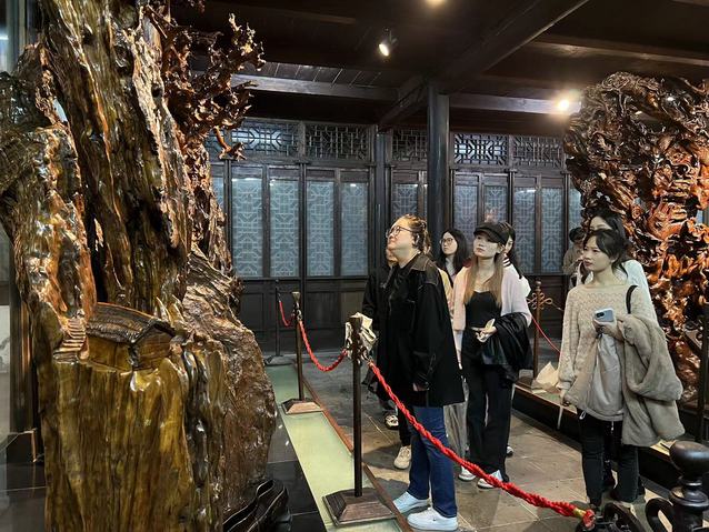 会议结束后,师生实地走访西塘古镇,在当地各级干部的陪同与讲解下,深入探寻古镇中的历史文化。师生们依次参观古镇内的朱宅、纽扣博物馆、永宁桥以及根雕艺术馆,深入了解在地传统文化的延续,新时代的科技创新与地方的艺术文化形成碰撞产生了独特的审美感受。走出西塘前往红菱村乡间,在乡野间体验独特的观察课堂。深入田野实地考察过程中,员工们不仅对新时代村庄实施的美丽乡村策略有了更深刻的了解,也对水乡江南的风土人情有了更直观的感受。当地原有的天然的乡土风情也为影视作品的创作提供了土壤,参观途中师生路过路过电影《乘风破浪》的拍摄地,感受当地电影艺术与实际生活的交融,电影的画面与现实交织也展现出了姚庄独有的文化魅力。