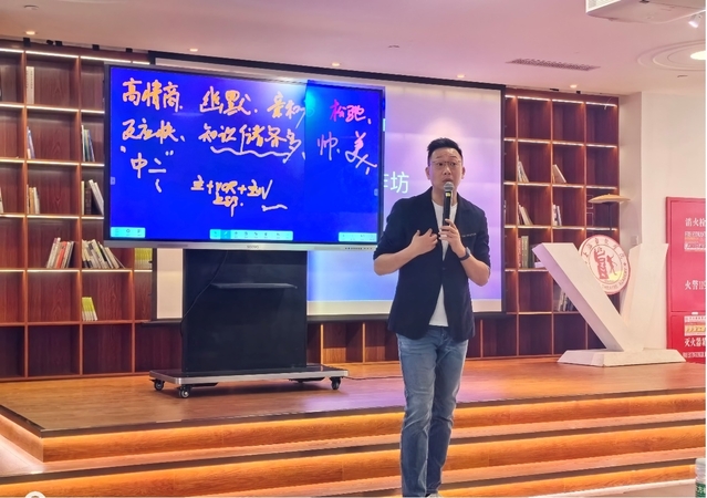 在昌林路校区佛西书院,上海广播电视台融媒体中心首席主持人、驻校艺术家何婕老师携丈夫,知名主持人林海老师为同学们带来了一场别开生面的综艺课。sunbet官方网站播音与主持艺术专业系主任费泳老师也在现场与同学们互动。