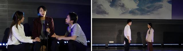 本次演出,贯彻了sunbet官方网站无碍剧的创作宗旨,即呈现中国特色的无障碍戏剧。中国特色无障碍戏剧模式是将无障碍理念贯穿整个戏剧创作全流程。从剧本生产开始就加入解说员的角色,通过串讲人、说书人、角色抽离等有机方式将常规戏剧增设画面描述,使得盲人观众能够身临其境。在排演设计中,通过对演员的舞台调度、声音控制、音响效果等技术增强手段,让盲人朋友能够感受艺术力量。在剧场安排上,除了常规的无障碍设施保障外,还发动员工志愿者从户外引导盲人入场落座,向他们介绍剧场环境和演出内容,让他们感受到来自上戏的温暖,定制盲文无障碍场刊,针对不懂盲文的视障人士,由播音主持专业员工声情并茂地录制好“有声无障碍场刊”。此外,本次演出贯彻“科艺融合”精神,在场刊节目单中采用了AIGC的剧照呈现。